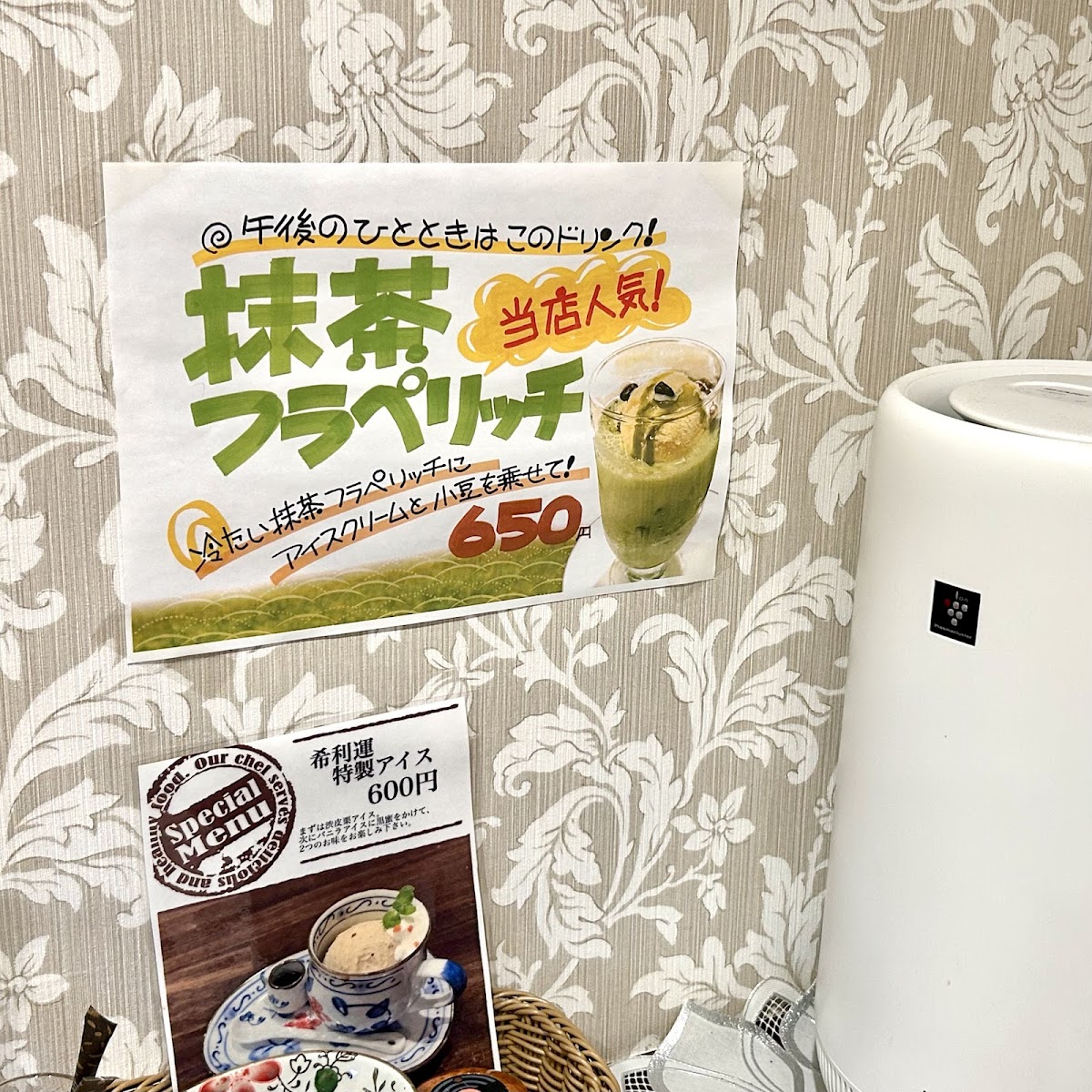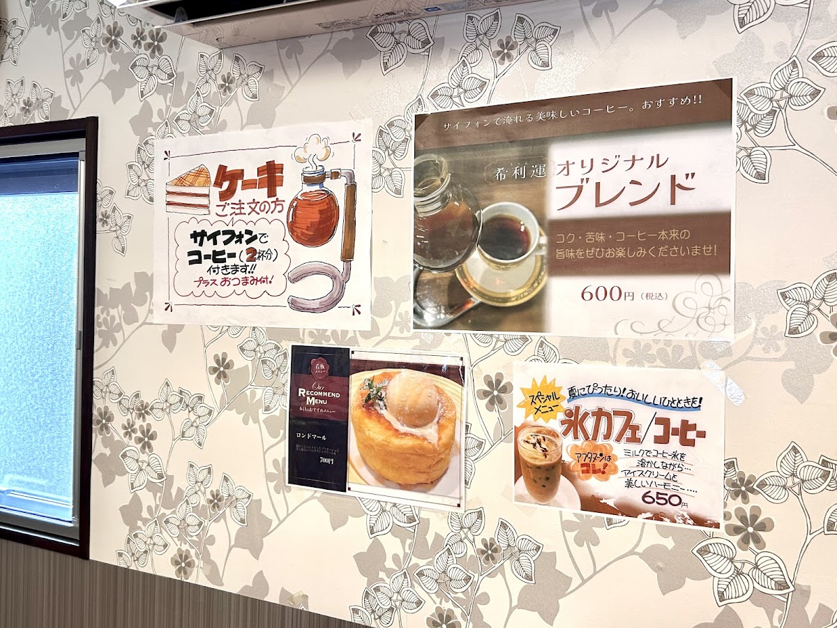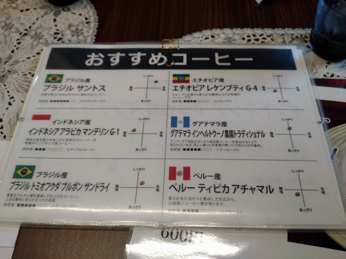 The menu offers a selection primarily centered around coffee and light food suitable for various times of the day, including morning and casual coffee breaks. Visitors can expect a range of coffee options, such as アメリカン コーヒー (American coffee) priced at 500 円, as well as specialty hot and iced coffee beverages. The menu also includes baked goods and desserts like チョコレートバナナケーキ (chocolate banana cake) and ショコラ ロッソ.