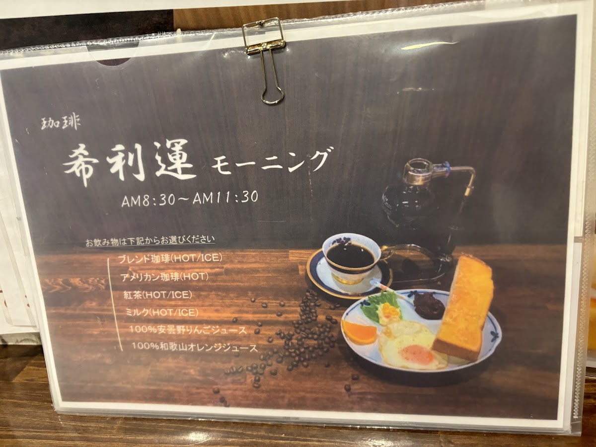 The menu structure supports a combination of drinks and light fare, making it suitable for customers seeking morning meals, afternoon snacks, or a coffee break. Drinks are often paired with food items, and some coffee orders come with additional servings, such as a second cup of coffee with cake.